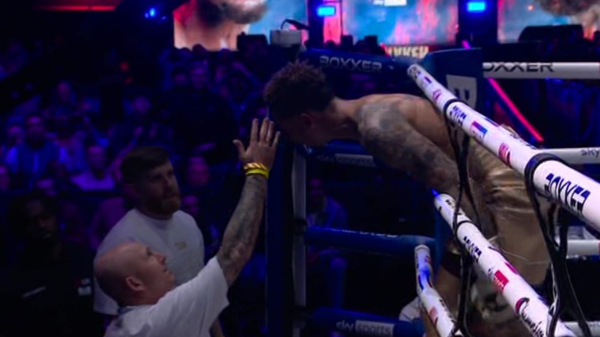Он бурно праздновал победу, приложив перчатку к уху в сторону толпы и бросившись к углу Кэмерона, что привело к резкому обмену репликами.
