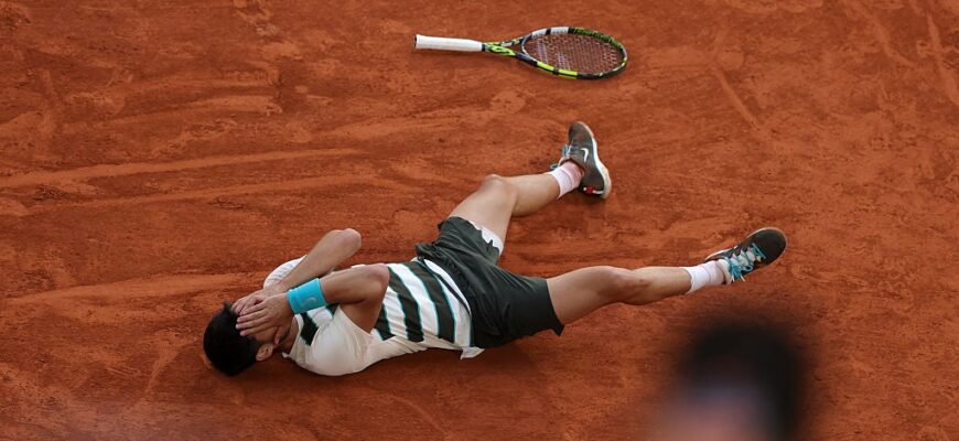 22-летний Алькарас теперь выиграл пять финалов турниров Большого шлема из пяти сыгранных. В этом матче он отыграл три матчбола на своей подаче и совершил то, чего никогда не делал раньше: отыгрался со счета 0:2 по сетам.