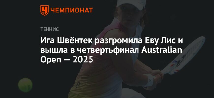 Первая ракетка мира Ига Свёнтек продолжает уверенное выступление на Australian Open. В матче 1/8 финала польская теннисистка разгромила немку Еву Лис со счетом 6-0, 6-1.