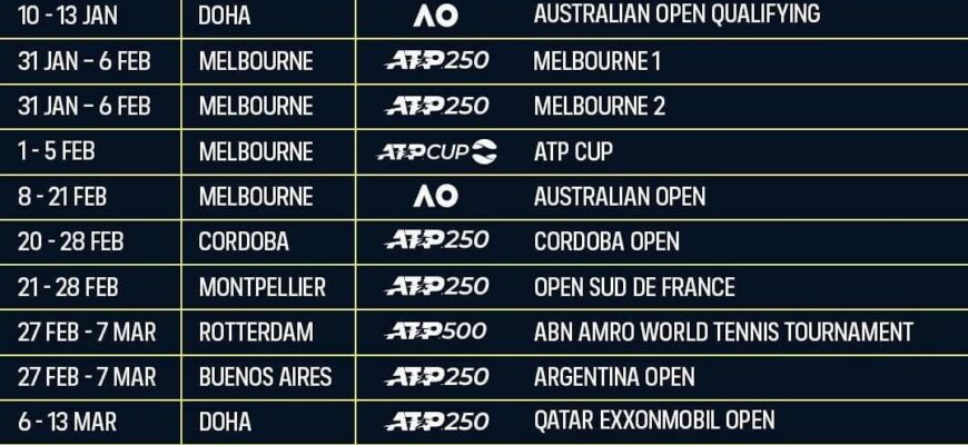 Календарь ATP тура 2025: расписание турниров мужского тенниса
