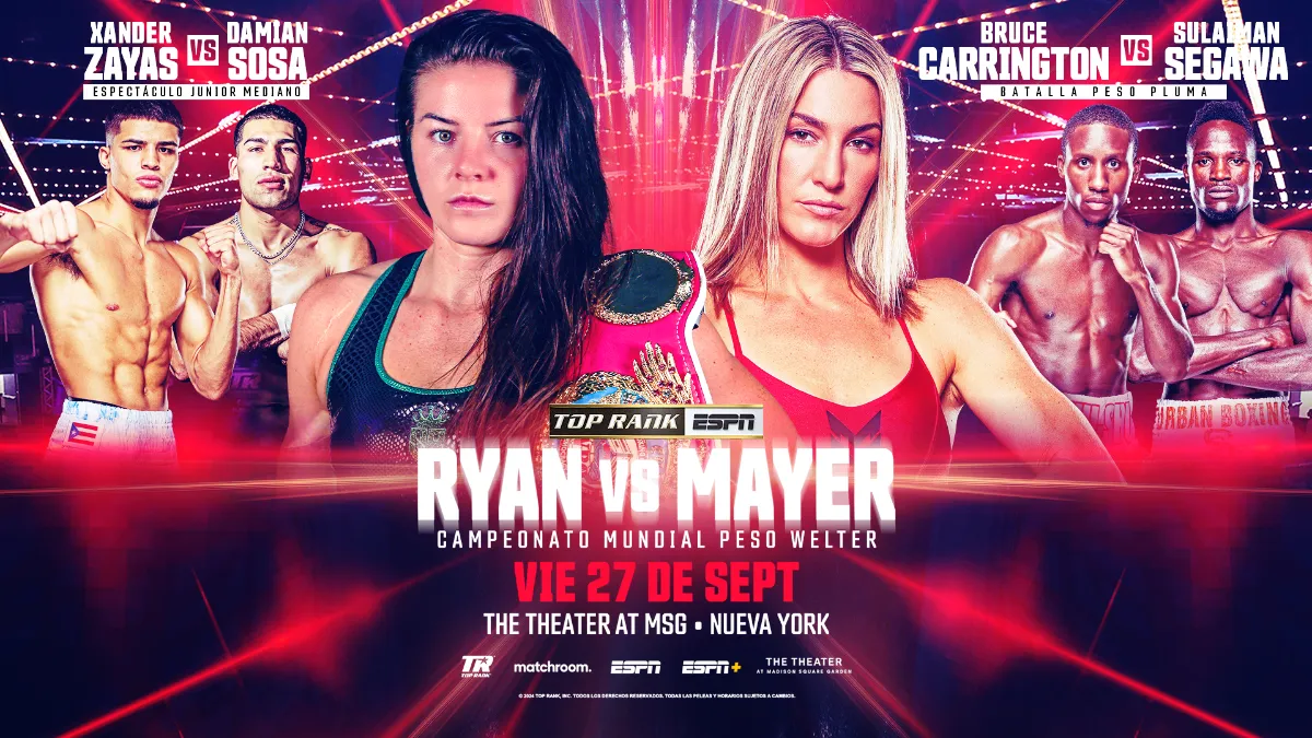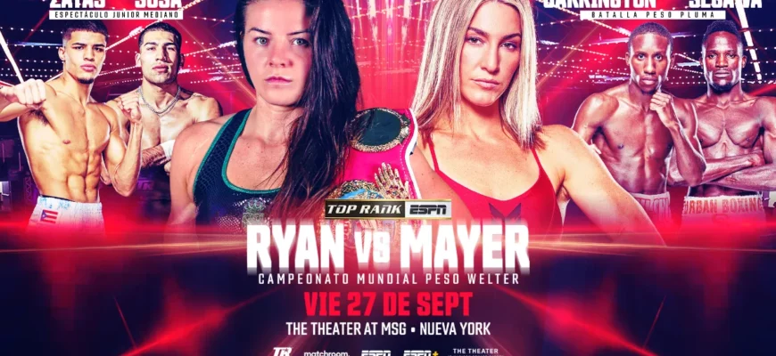 Майер выиграла их первый поединок решением большинства судей в упорном бою в Нью-Йорке в прошлом году. Однако тот бой был омрачен неожиданной атакой на Райан — британку облили красной краской, когда она выходила из отеля, чтобы отправиться на арену Madison Square Theater.