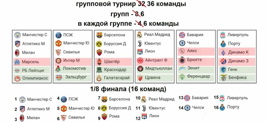 Таблица Лиги чемпионов сезона 2024/25: текущее положение команд